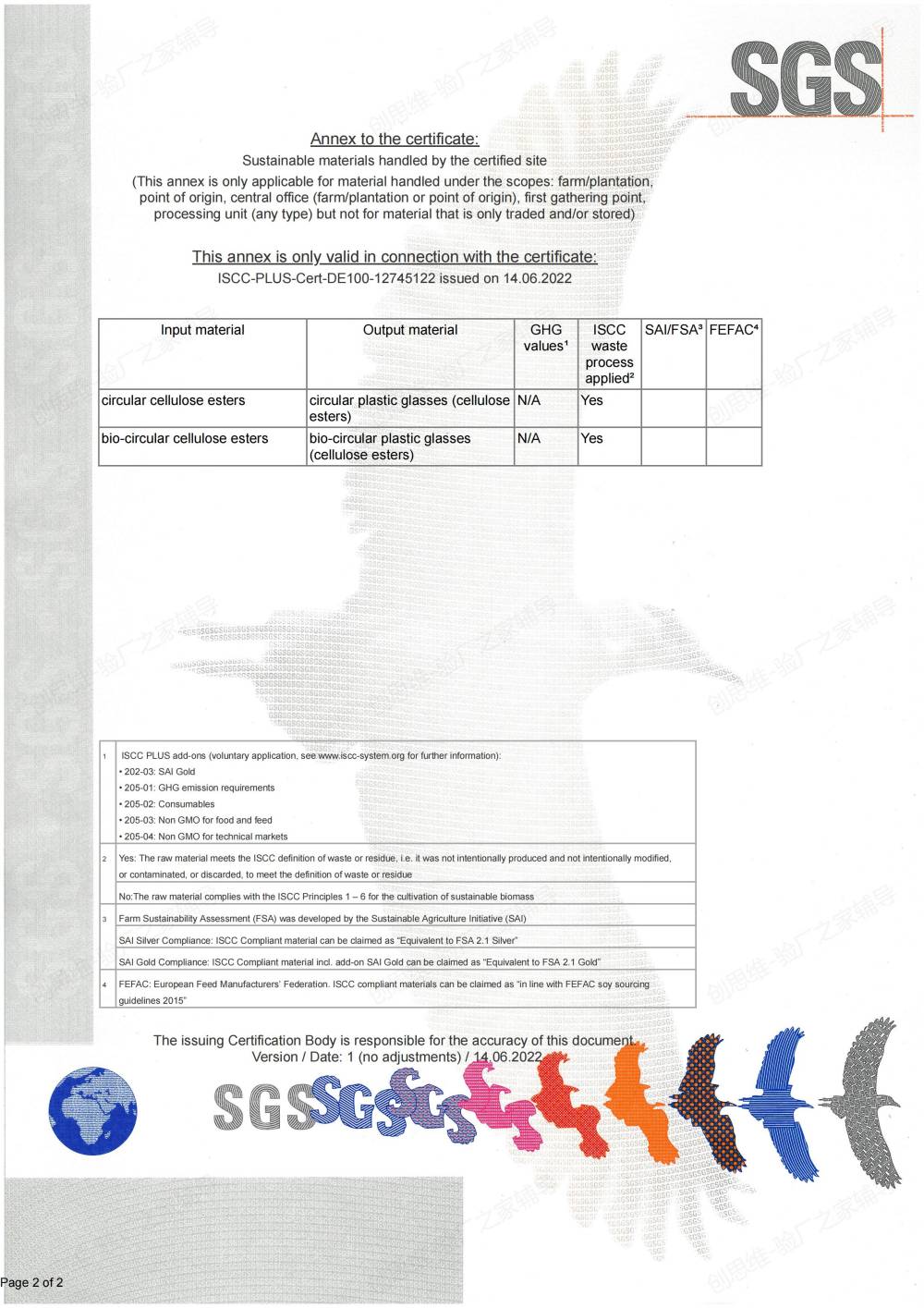 鑫山姆光學2022年在創思維驗廠輔導下順利通過國際可持續發展與碳認證-ISCC認證。