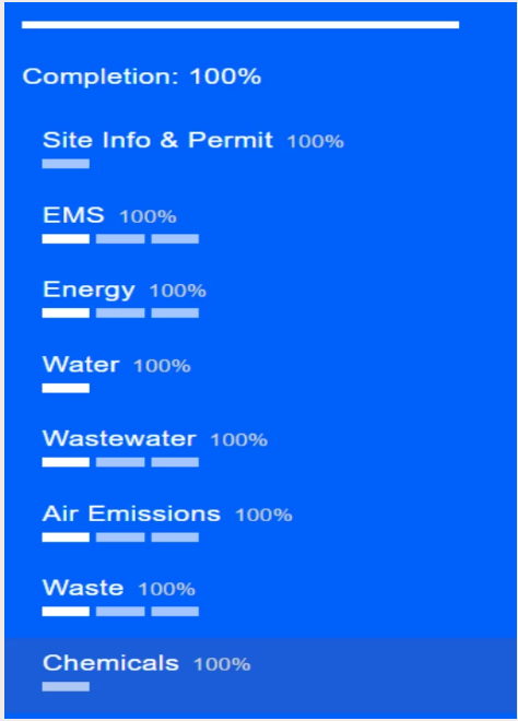 完成付款并得到確認后,可進入自界面開始填寫;HIGG FEM自評模塊一共分為8個方面: