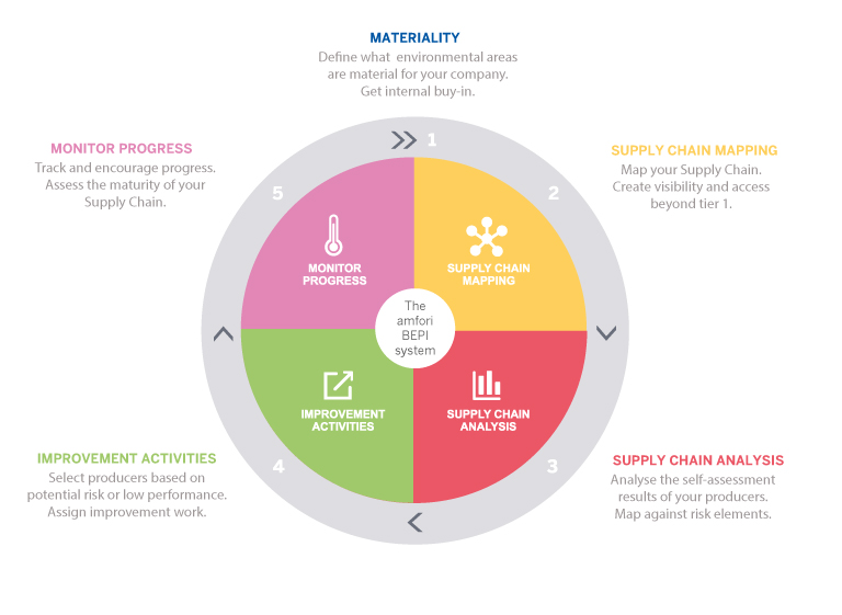 amfori BEPI 系統(tǒng)是公司及其供應(yīng)鏈通過差距分析、環(huán)境管理改進、現(xiàn)場行動計劃和進度監(jiān)控來實現(xiàn)環(huán)境績效持續(xù)改進的實施系統(tǒng)。